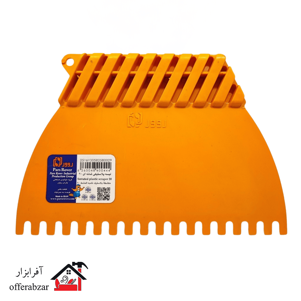 لیسه شانهای پلاستیکی 20 سانتی پارس روور با دندانههای مقاوم و یکنواخت، جهت توزیع دقیق چسب و ملات در سطوح مختلف استفاده می شود.