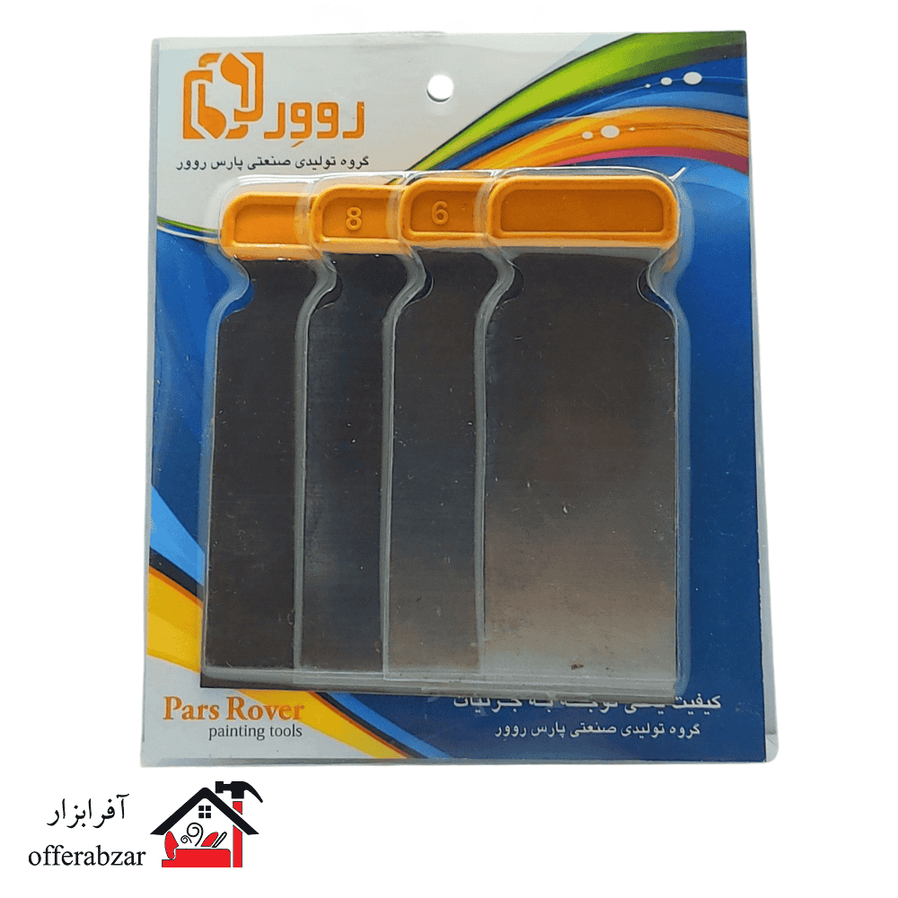 لیسه فنری فلزی پارس روور شامل 4 لیسه انعطاف پذیر فلزی در سایزهای 4،6،8،10 سانت است که جهت پرداخت بتونه روی سطوح نامنظم کاربرد دارد.